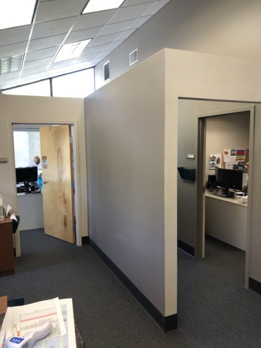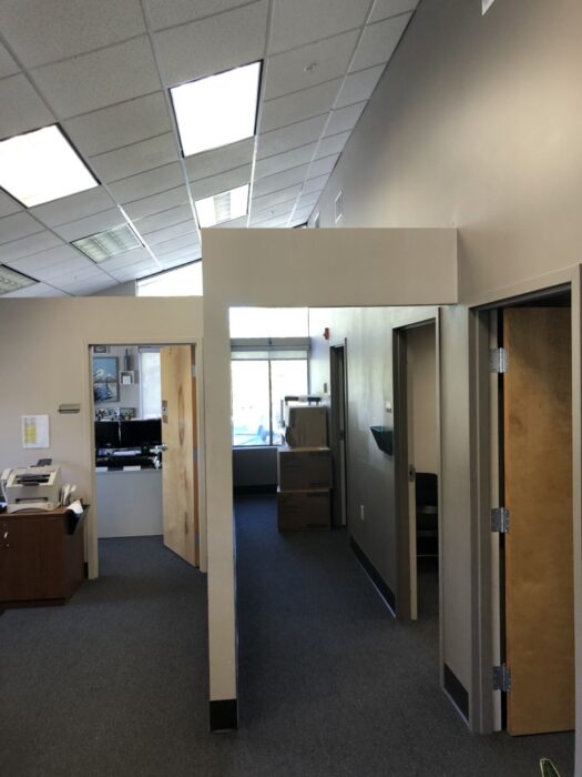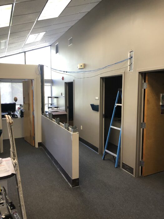 Project Requirements: Demolish wall. Work Performed: Tear down the wall and all drywall. Relocated the electrical and network wiring. Install drywall patches, and patch flooring.