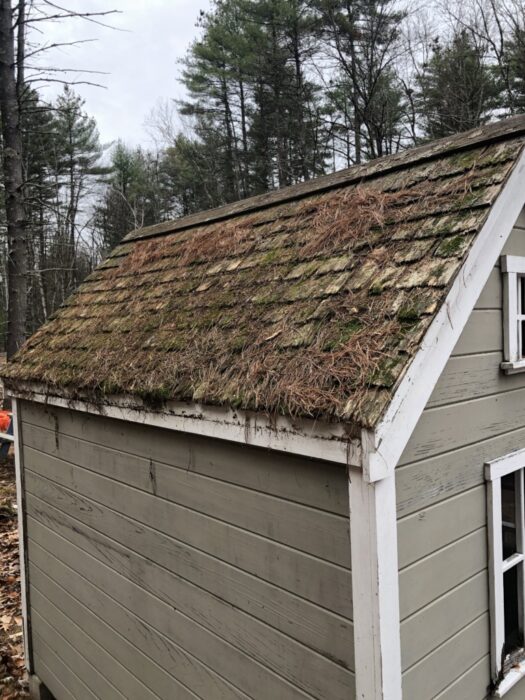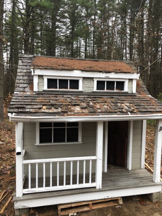 Work Performed: Strip rotted trim and the window trim. Removed all of the cedar shakes off the roof. Purchase materials needed for new cedar shake roof and trim. Finished playhouse with a fresh coat of paint.